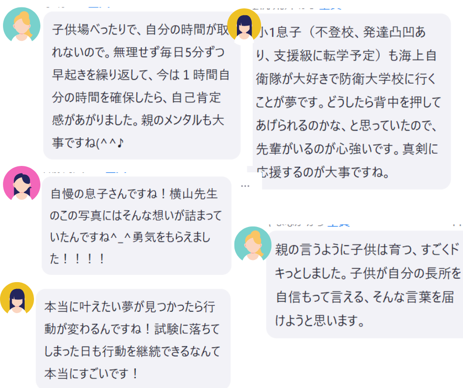不登校からの進路選択という目の前のお悩みのほか、社会人になるまでの自立の過程、夢に挑戦する力の育て方までまるっと解決できた60分。