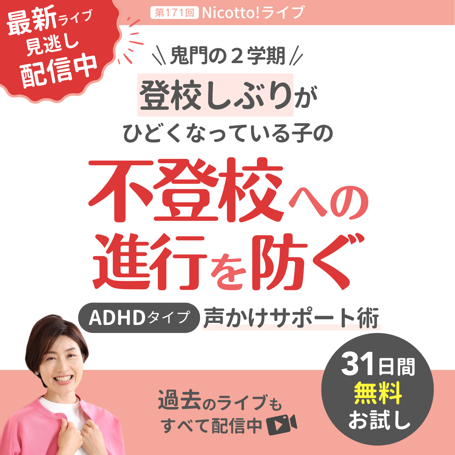 【31日無料:会員限定録画公開】\鬼門の2学期/ 登校しぶりがひどくなっている子の 不登校への進行を防ぐ ADHDタイプ声かけサポート術