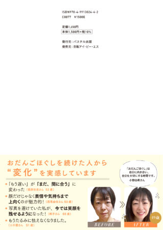自分の手で行う「おだんごほぐし」で顔コリをゆるめることで、フェイスライン・ほうれい線・目元のたるみが整い、顔の印象が大きく変わっていきます。顔がゆるむと表情が変わり、表情が変わると人との関係が変わる。そして人生の景色も少しずつ上向いていきます。