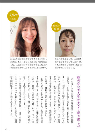 実際に、本書には「写真を避けていた私が笑顔で写れるようになった」「自信がついて新しいことに挑戦できた」など、人生が前向きに変化した女性たちのBefore/After事例を多数掲載しています。