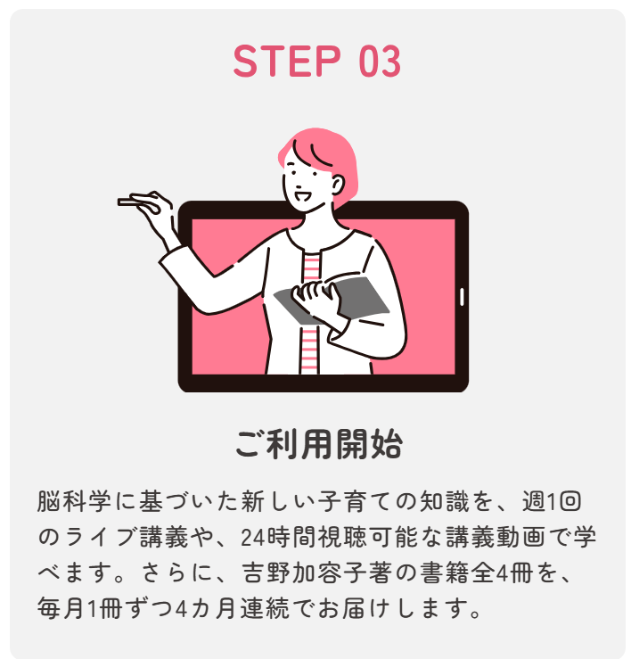 ※書籍は発達科学コミュニケーションをご受講されていない方で、はじめてNicotto!塾にご登録いただいた方を対象にお届けします。毎月月末までにご登録いただいた方へ、翌月よりお届け開始します。書籍到着は毎月8日前後となります。