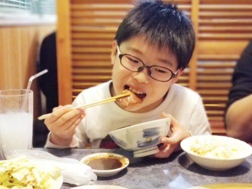お昼の焼肉屋さんはビジネスパーソンがほとんどで、息子と同年代の子はいません。みなさん限られた昼休みの時間でお昼を済ませるので、わざわざ息子をジロジロ見てくる人もおらず、安心ポイントになりました。